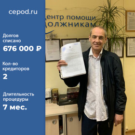Списано долгов на 676 000р. за 7 месяцев. Кол-во кредиторов - 2 шт.